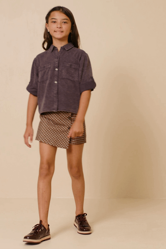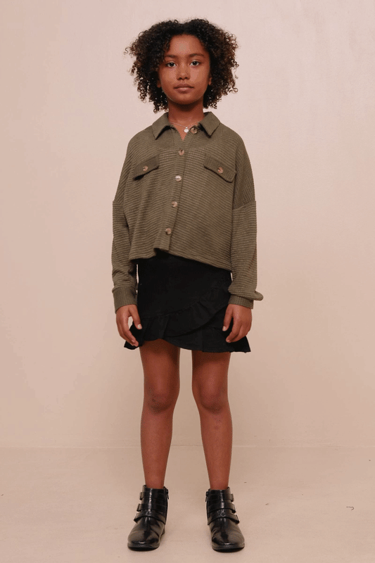 Girls Soft Waffle Knit Dolman Button Up Shirt
