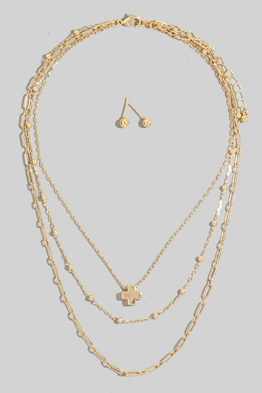 Cross Pendant Layered Chains Necklace Set:Regular price $19.99 USDRegular priceUnit price per-