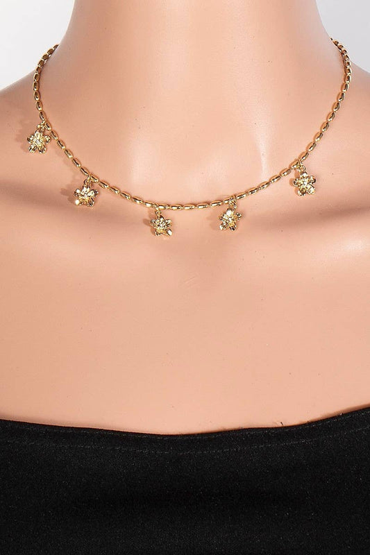 Metallic Flower Statin Charms Beaded Necklace