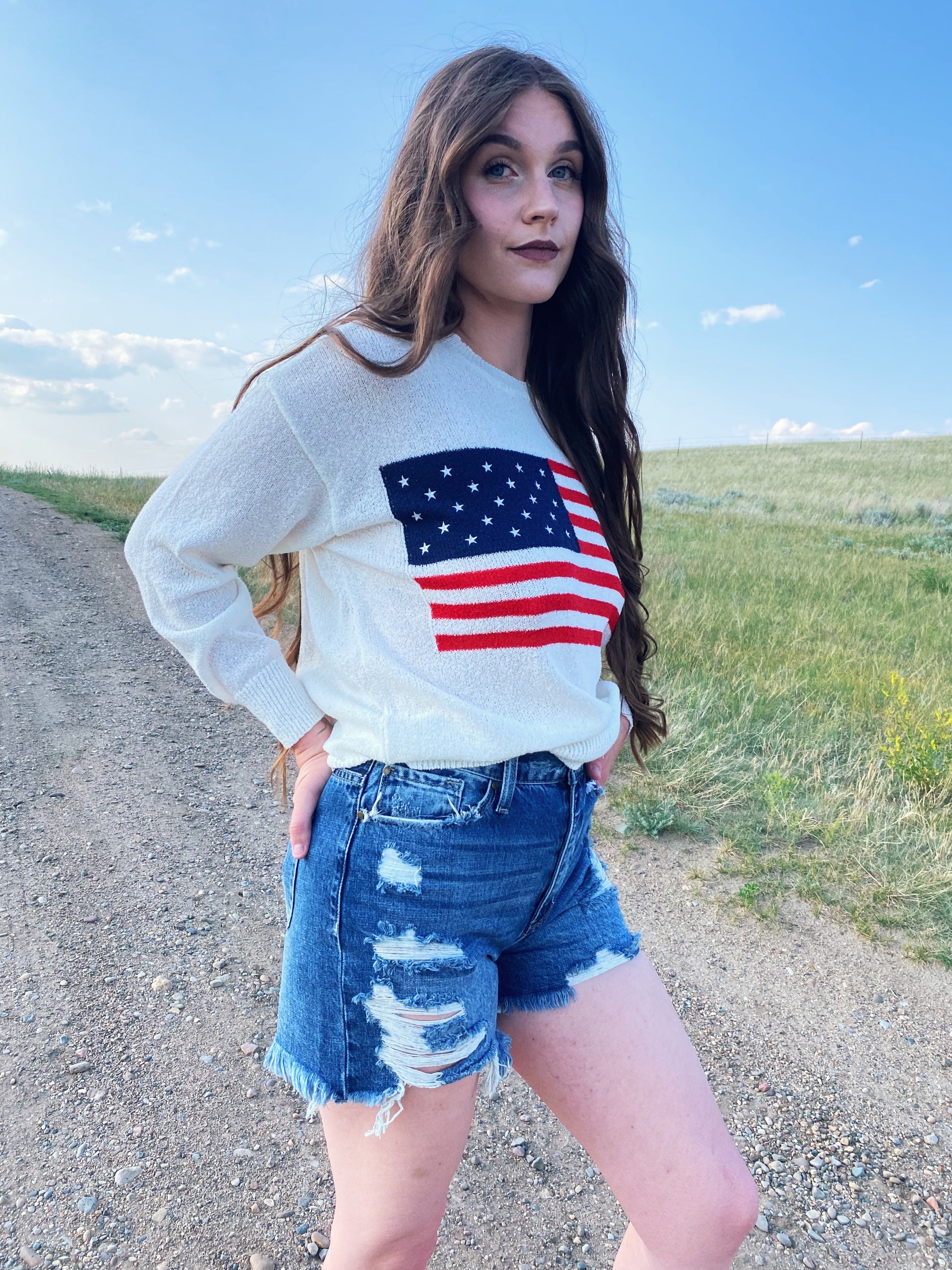 AMERICAN FLAG KNIT SWEATER PULLOVER