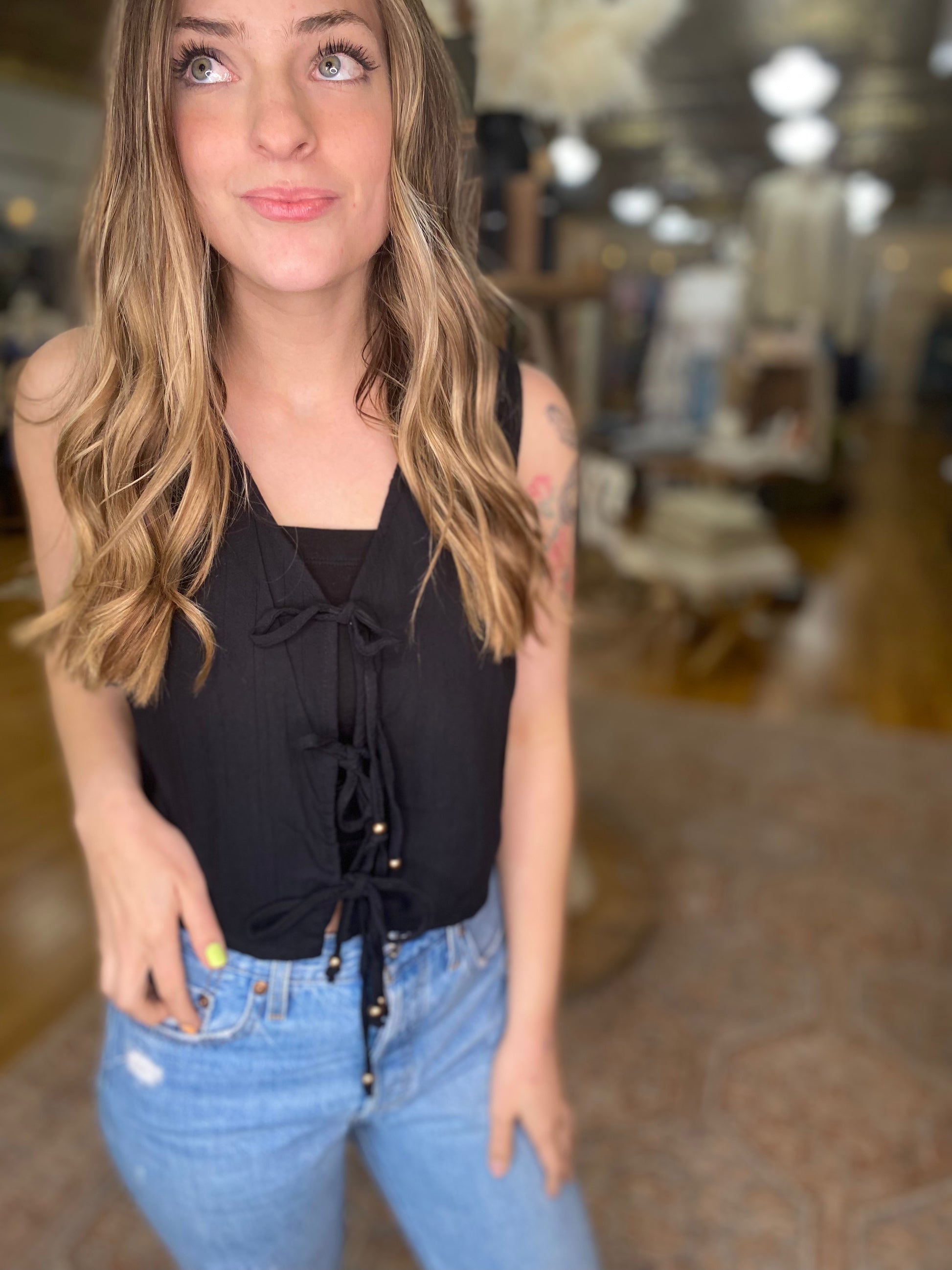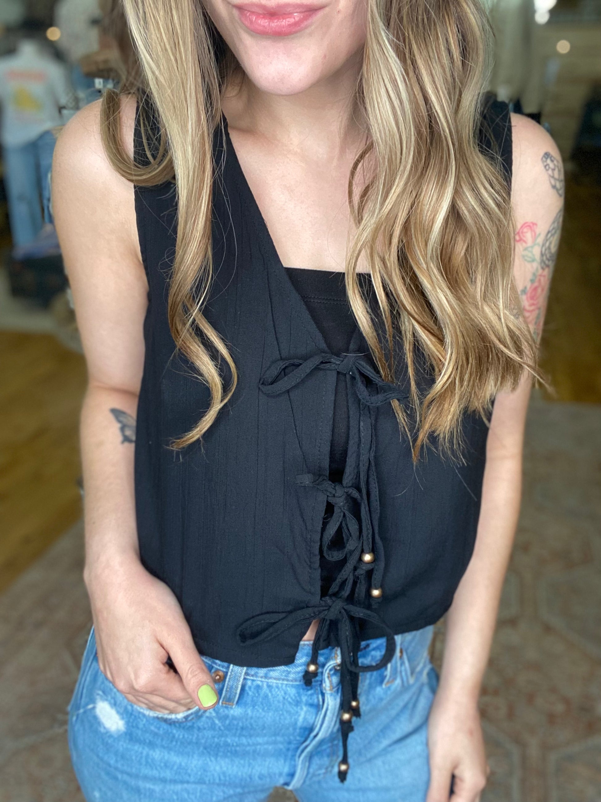 SLEEVELESS TOP WITH THREE TIE CLOSURES