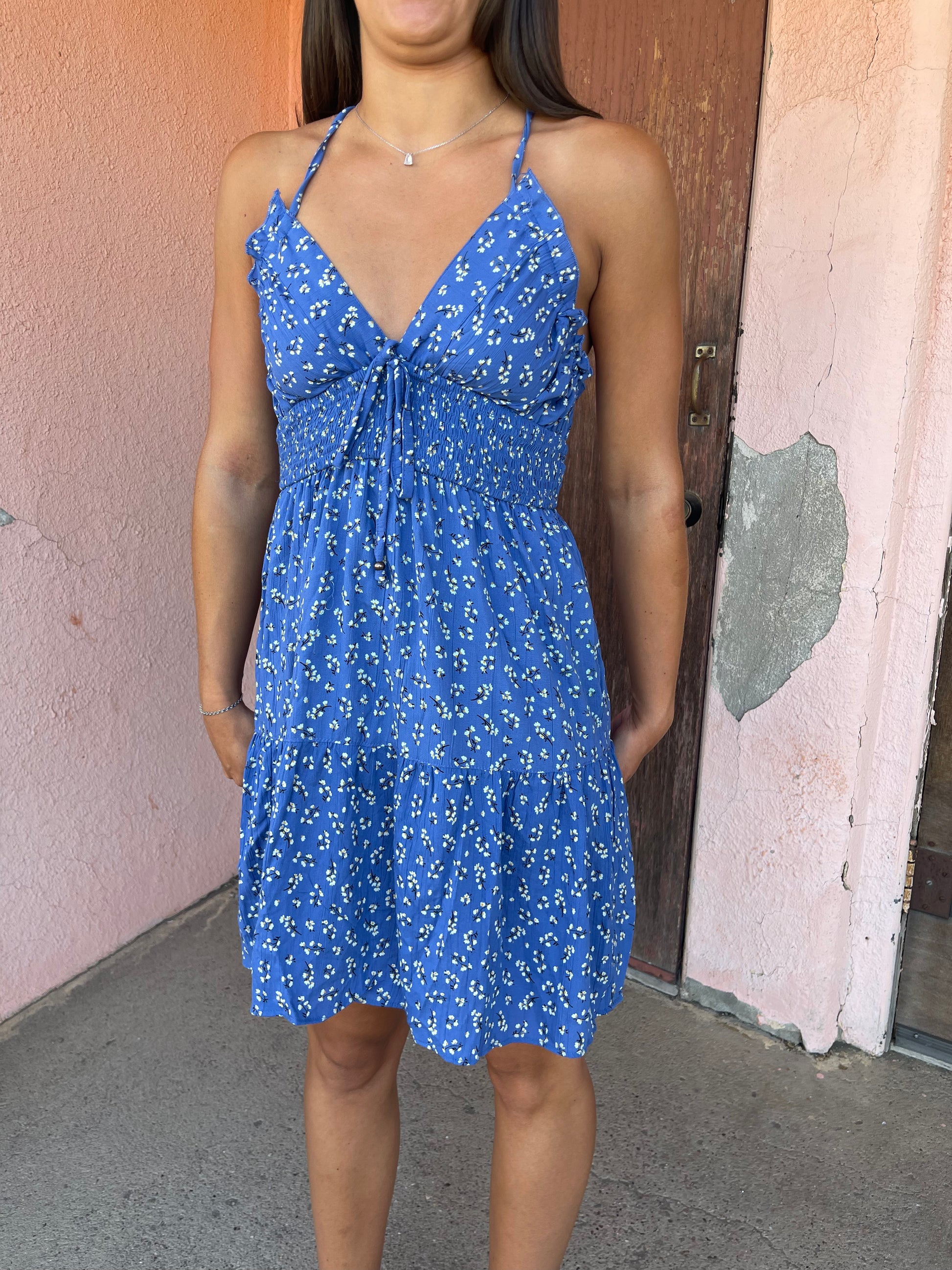 Embrace your bohemian spirit with the V Neck Criss Cross Straps Ditsy Print Sundress by Angie. This sundress features a playful ditsy print and a flattering V-neck design with criss-cross straps. It's a perfect choice for everyday wear. The mini length adds a touch of modernity to this vintage-inspired piece. Angie, a brand deeply rooted in bohemian and vintage influences, brings you this dress that is as bold and poetic as you are.