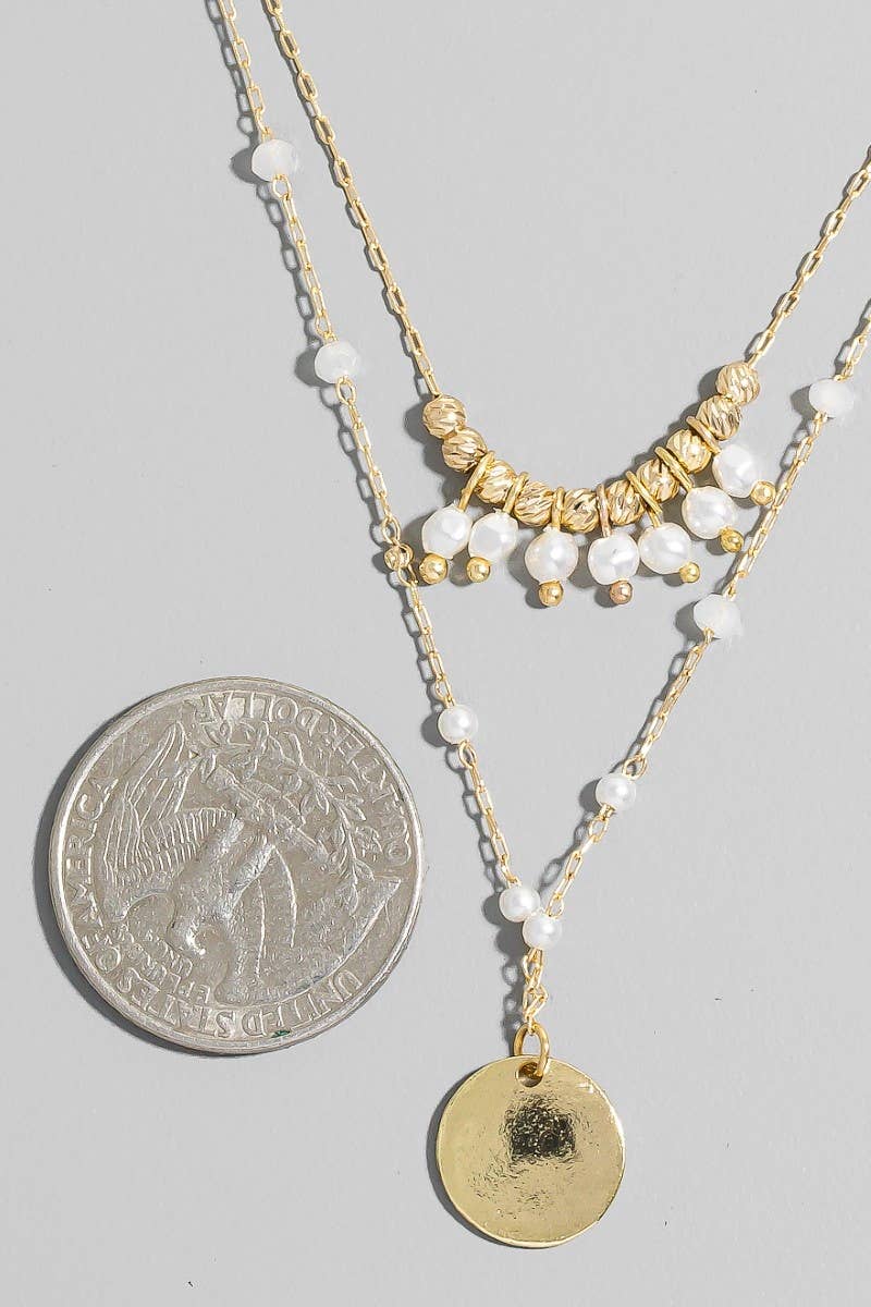 Coin Pendant Pearl Layered Necklace