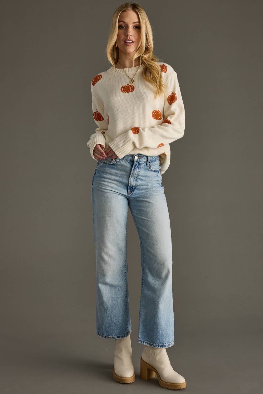 Cream knit sweater Pumpkin designs on the front & back 100% Acrylic
