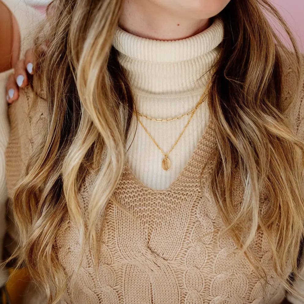 The Cross Pendant Necklace is 18k gold plated. Available on a 17.5" chain or 19" chain.