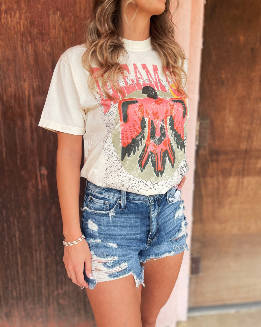 Get ready to "Dream on" with our one-of-a-kind boho graphic tee! Featuring a hand-drawn Thunderbird design, this quirky and playful tee is sure to add a touch of fun to any outfit collection!