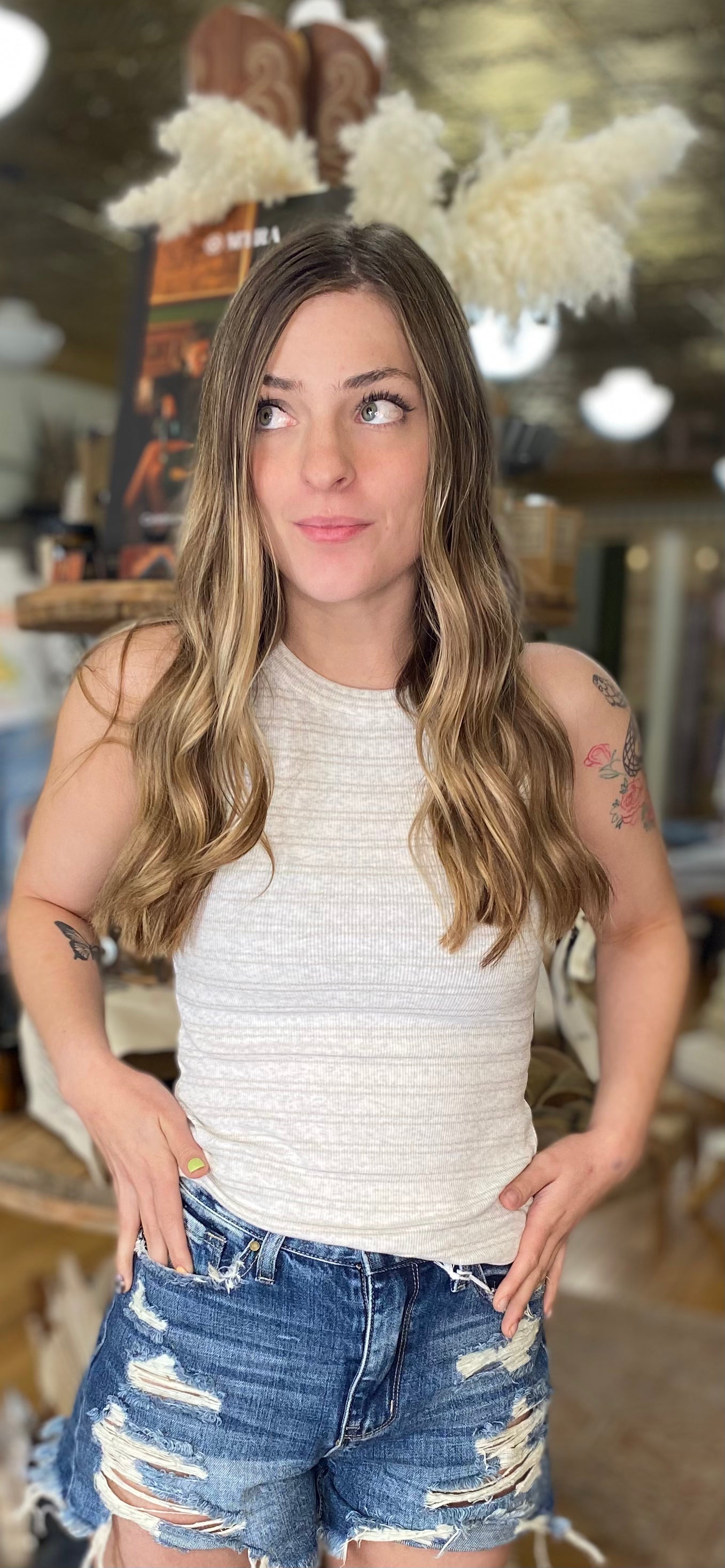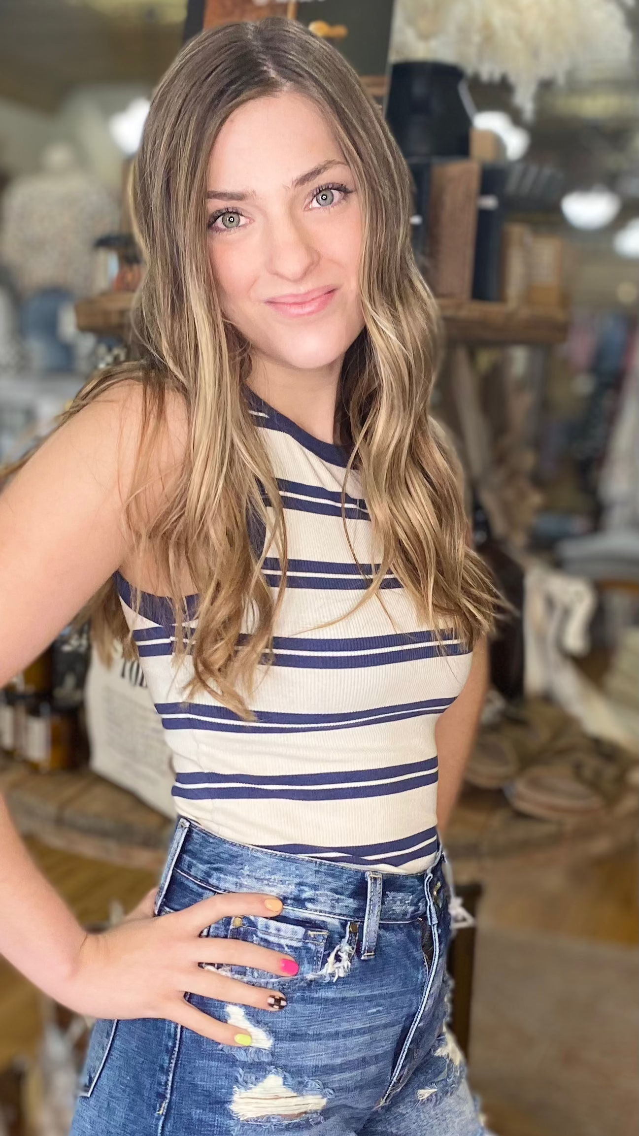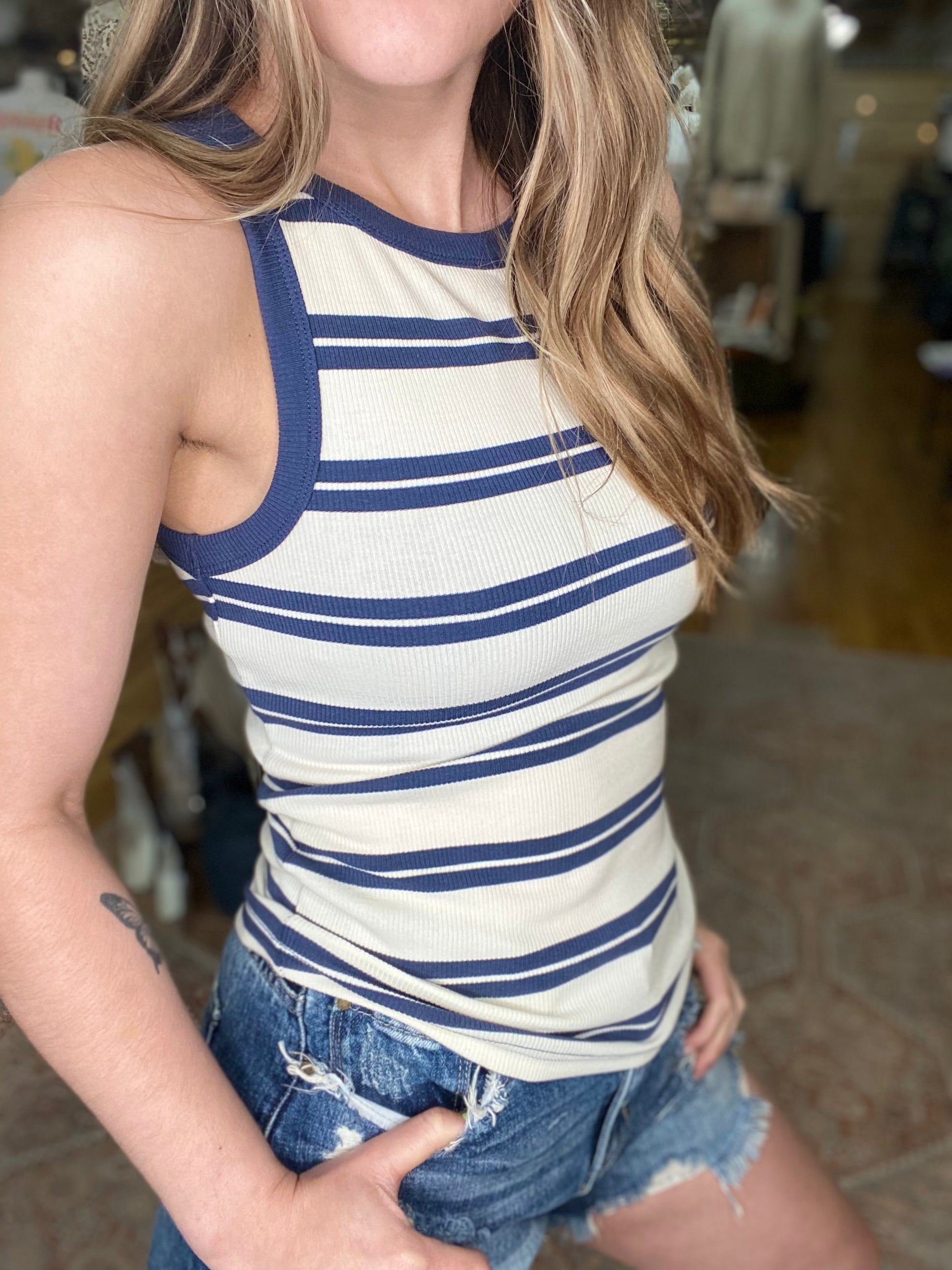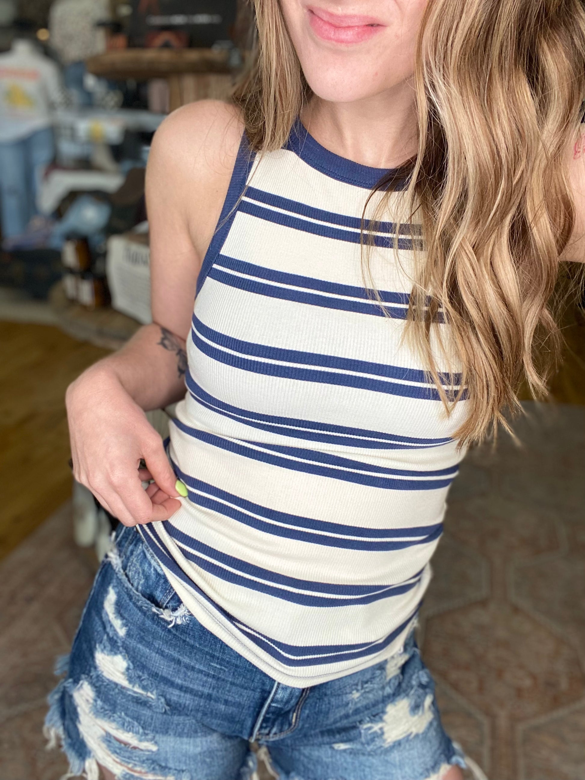 Your new favorite timeless tank, featured in a soft, ribbed knit fabrication and slim-fitting silhouette with a classic stripe print.