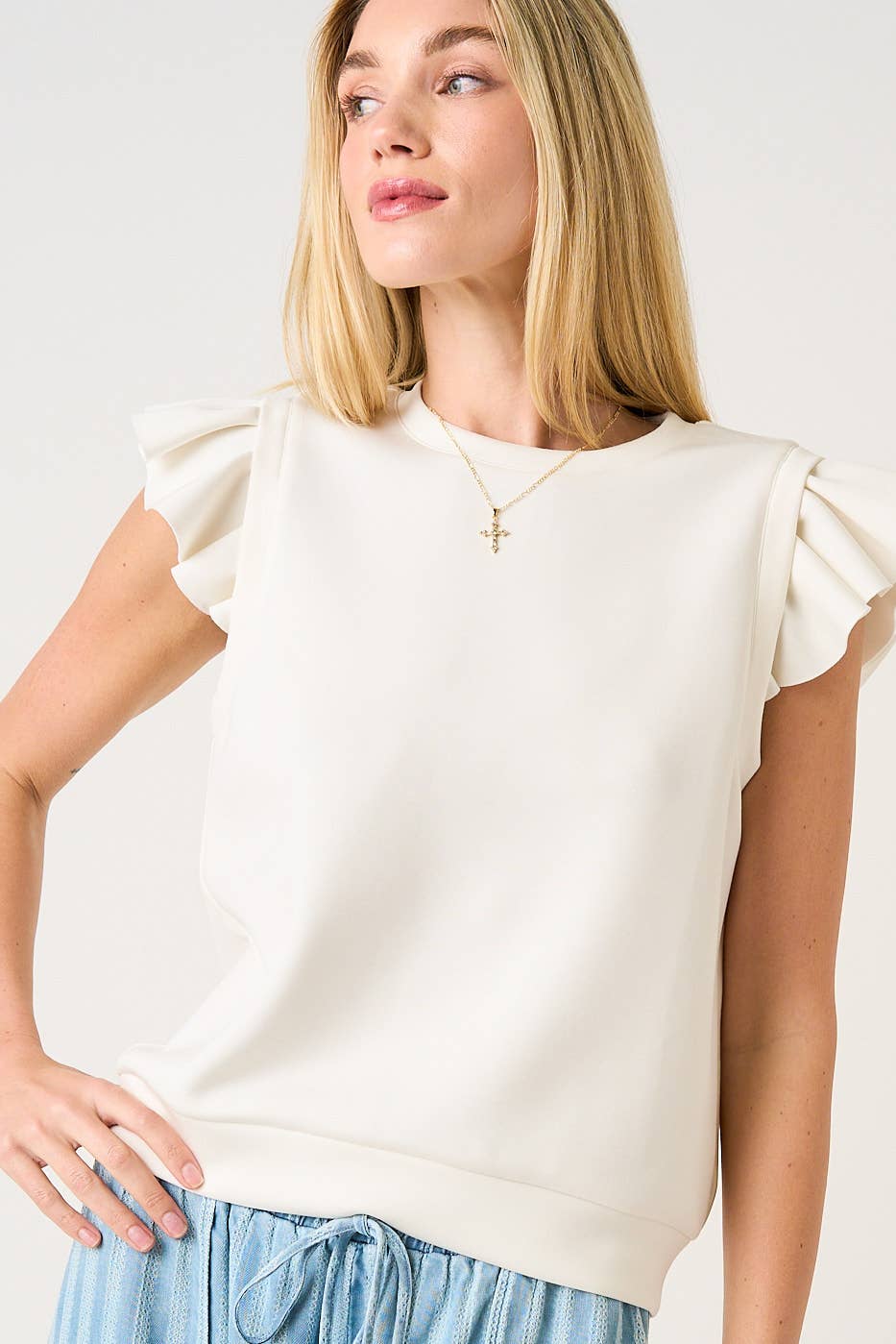 FLUTTER SLEEVE PREMIUM KNIT TOP
