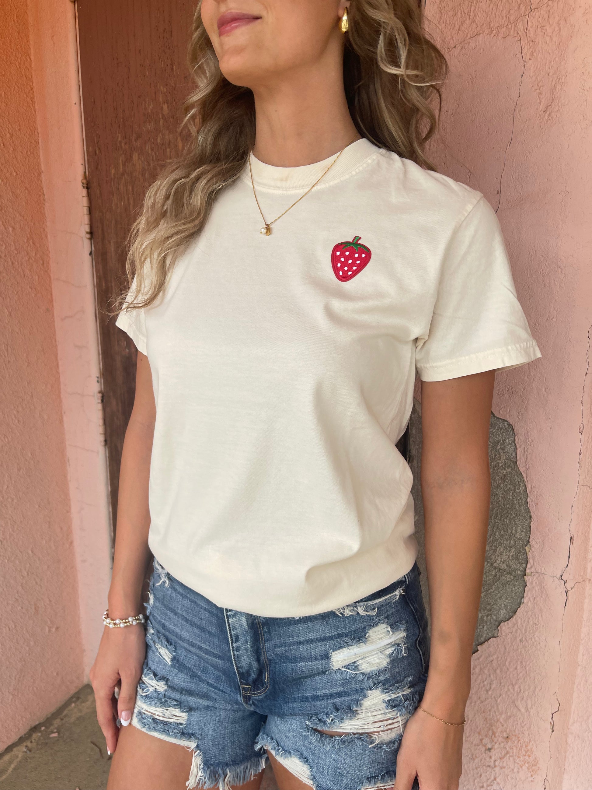 A summer best seller! 🍓 Growing + harvesting the goodness of the Fruit of the Spirit 🫐🍒 Printed on an off-white 100% Comfort Color tee Front: Strawberry patch in left corner Back: graphic across the back Summer Collection / Fruit Collection / Farmer Market Summer Graphics