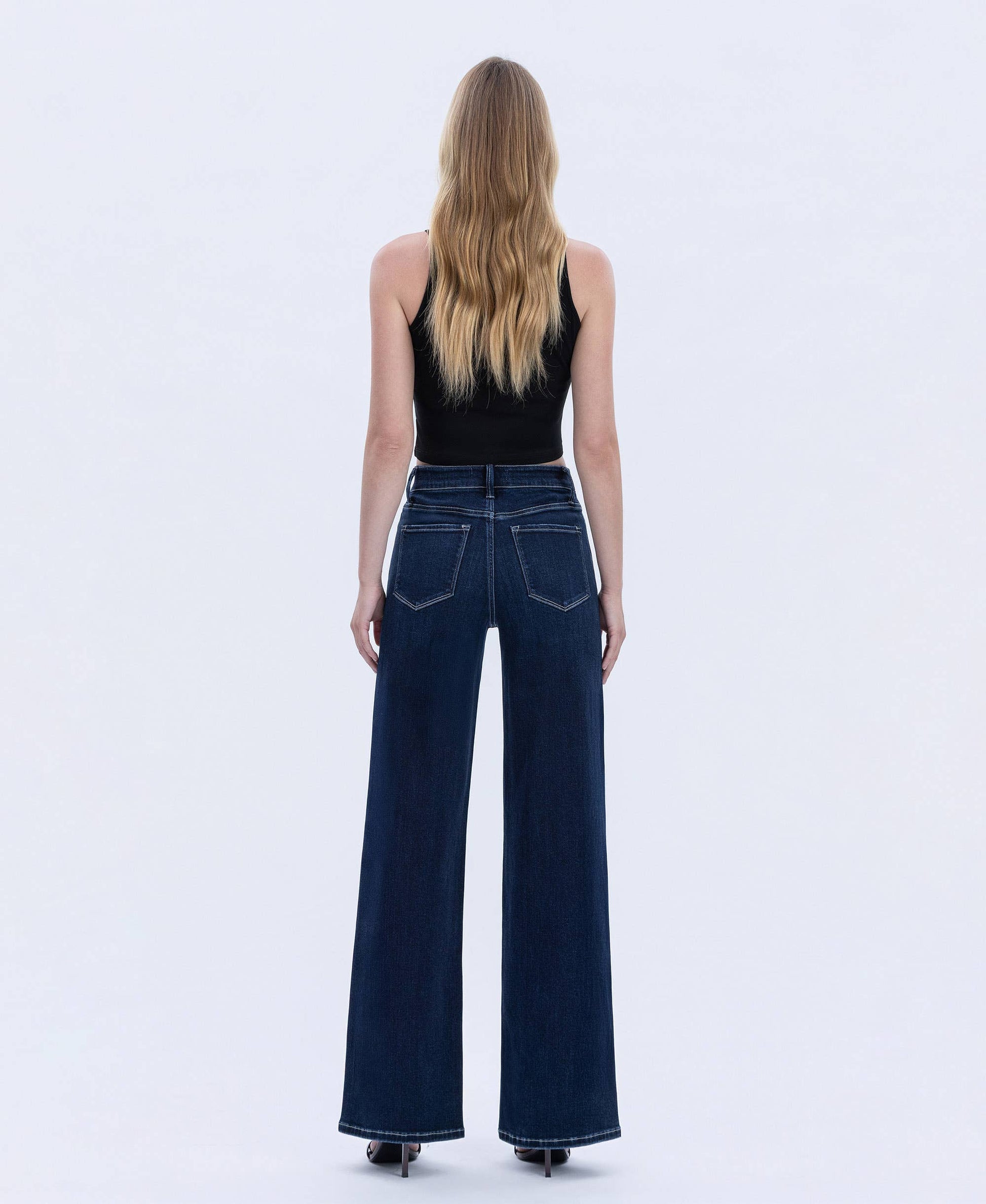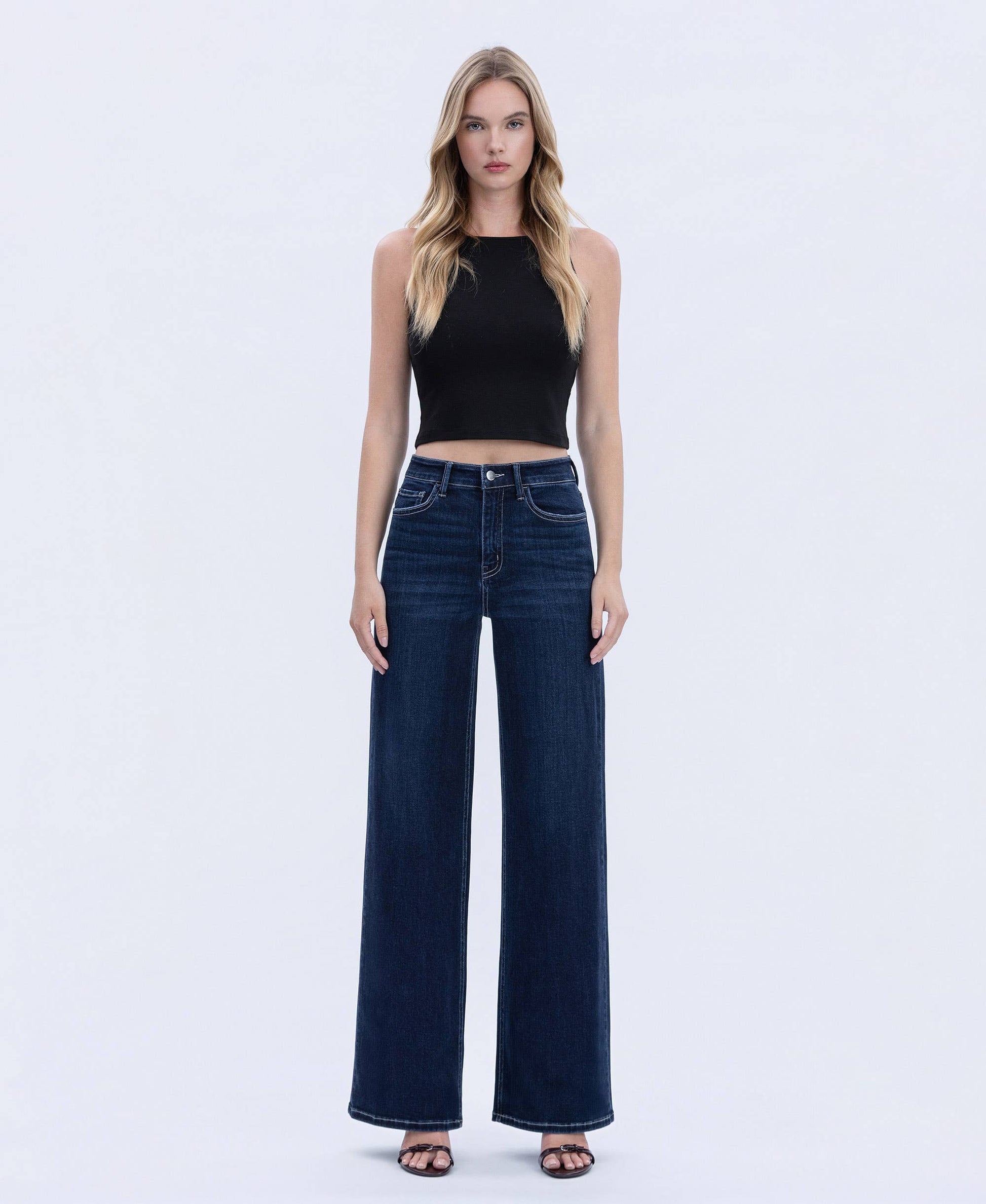 HIGH RISE DARK WASH FULL LENGTH WIDE JEANS