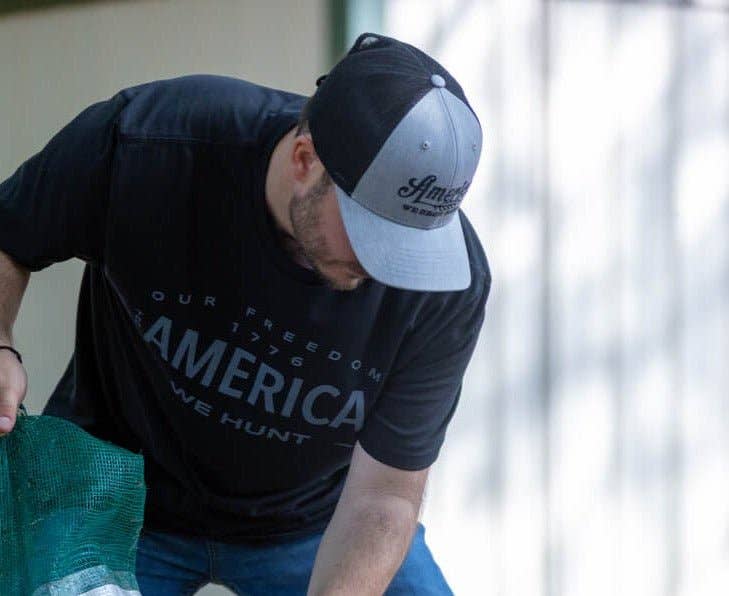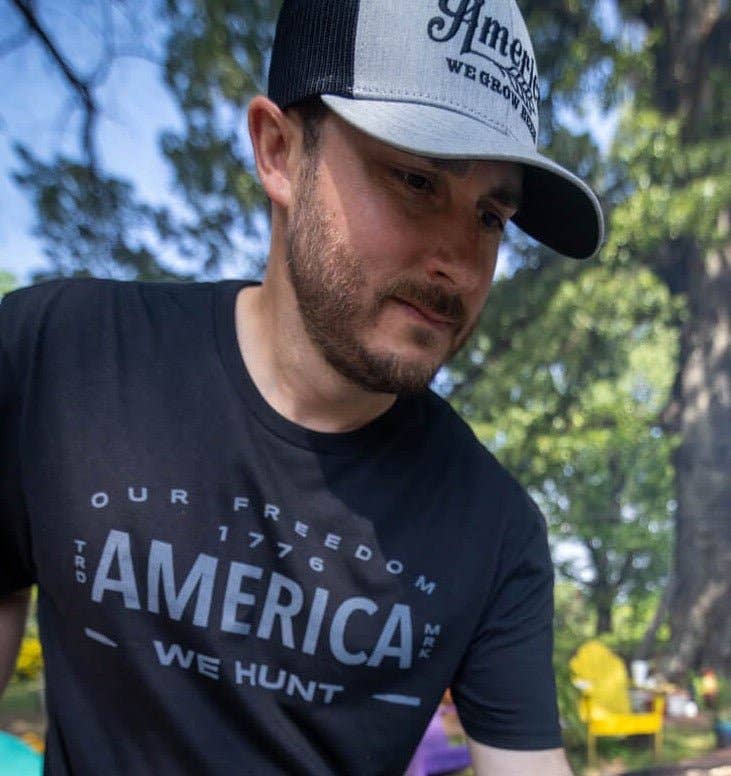 Embrace your hunting heritage with the Hunt America Tee, showcasing the freedom and tradition of American hunters since 1776.