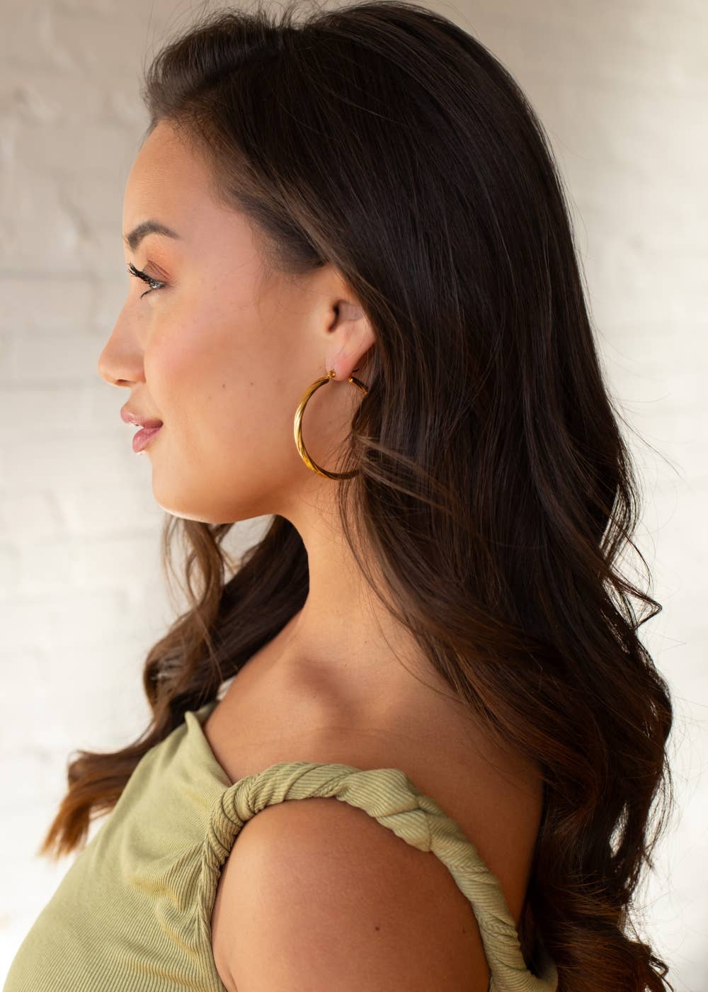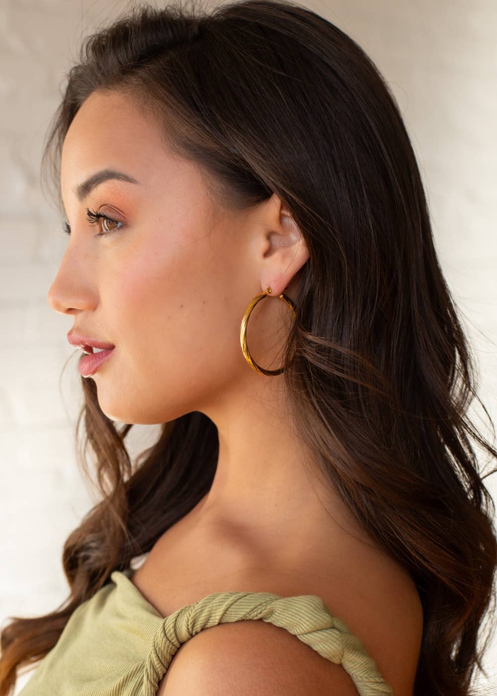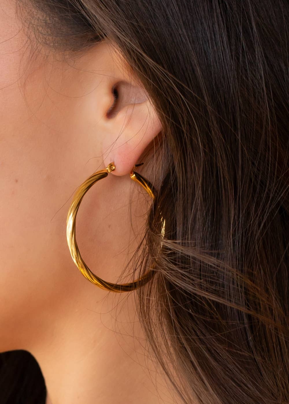 Luxe 18K gold twisted hoop earrings 2" diameter Waterproof Stainless steel & lead and nickel free