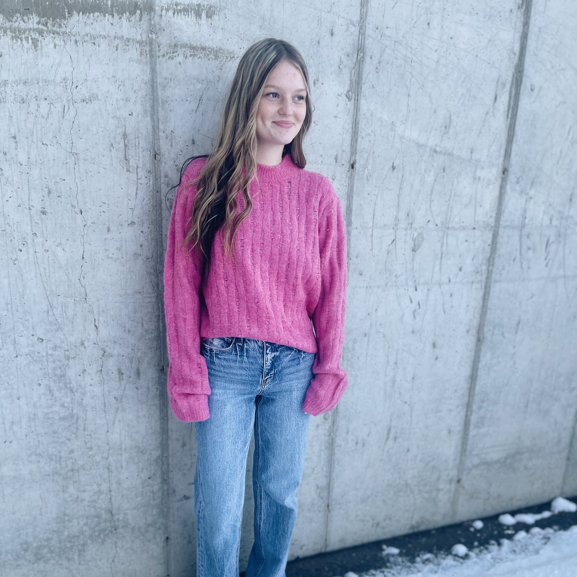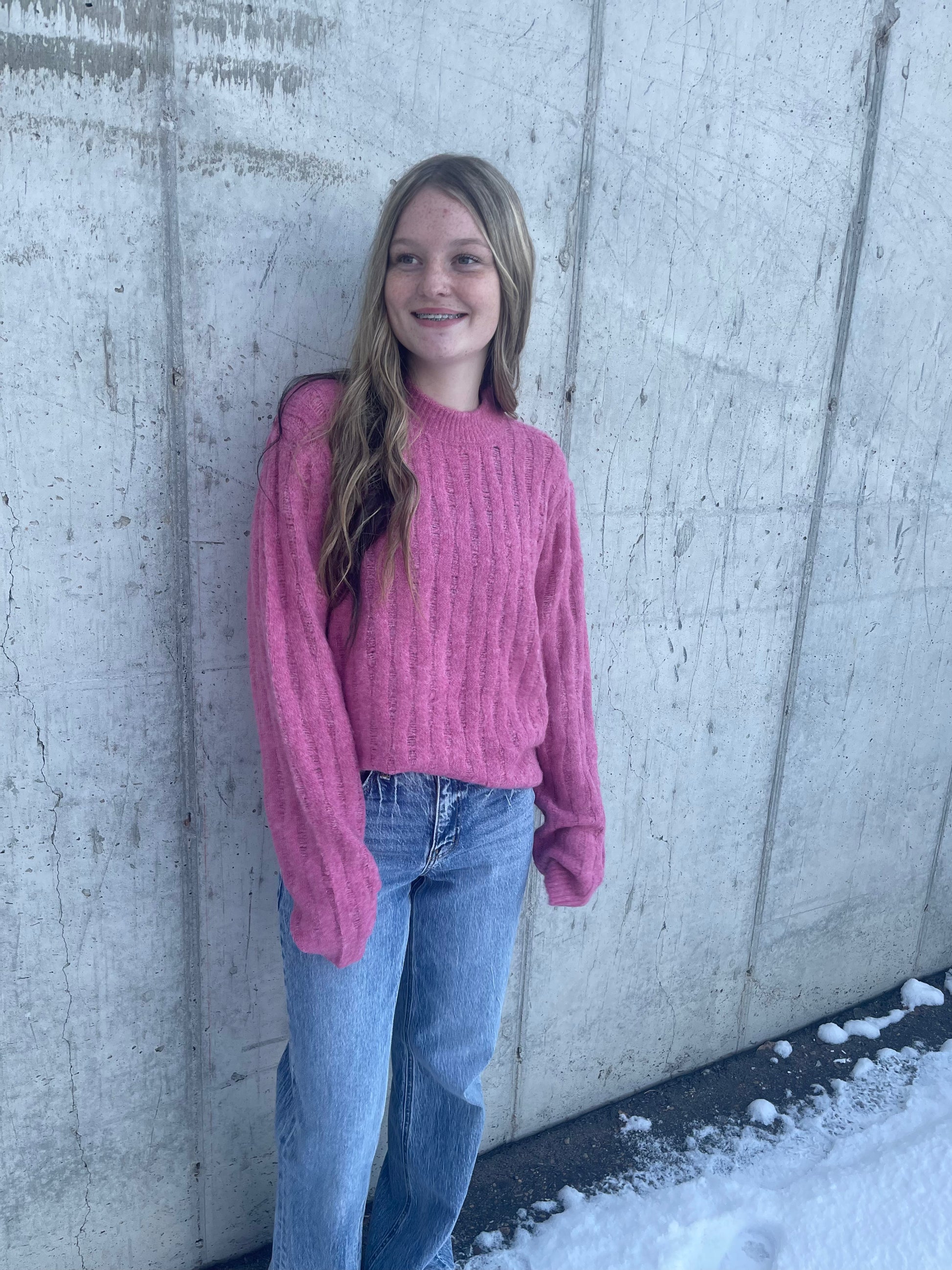 MACEY MOCK NECK PINK SWEATER