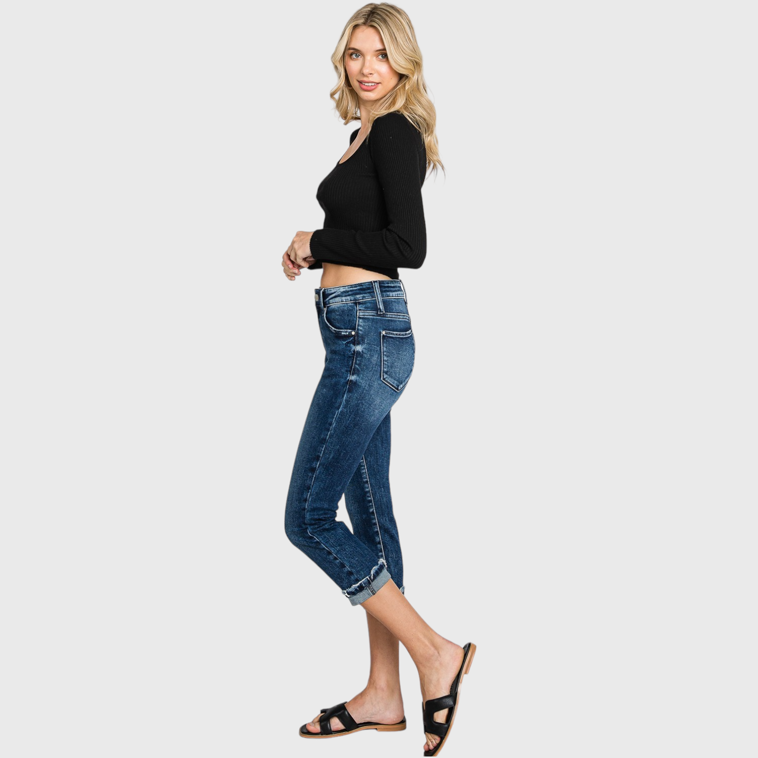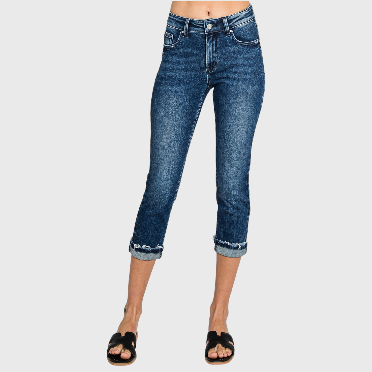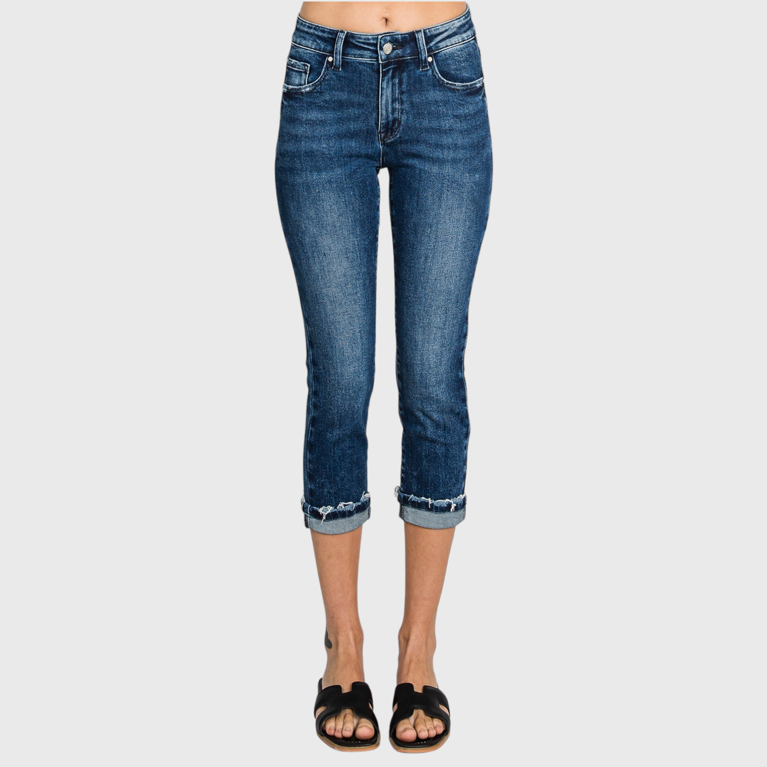 MID RISE SKINNY CAPRI JEANS W/ CUFFED HEM