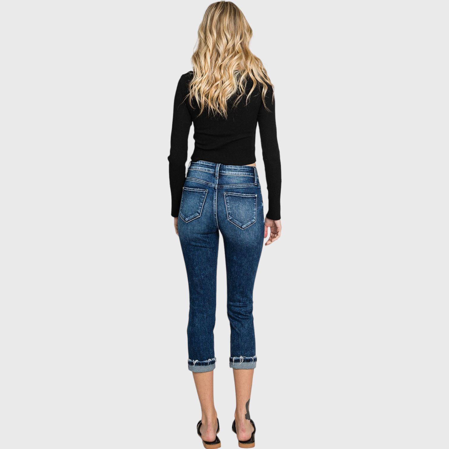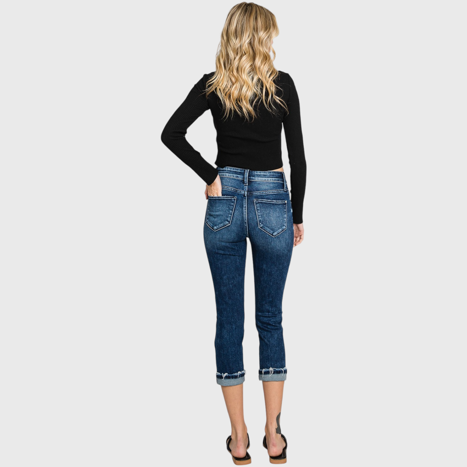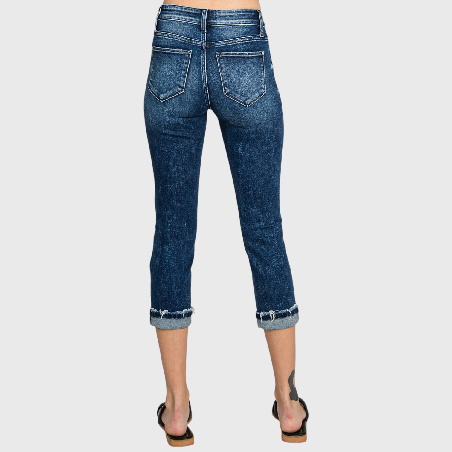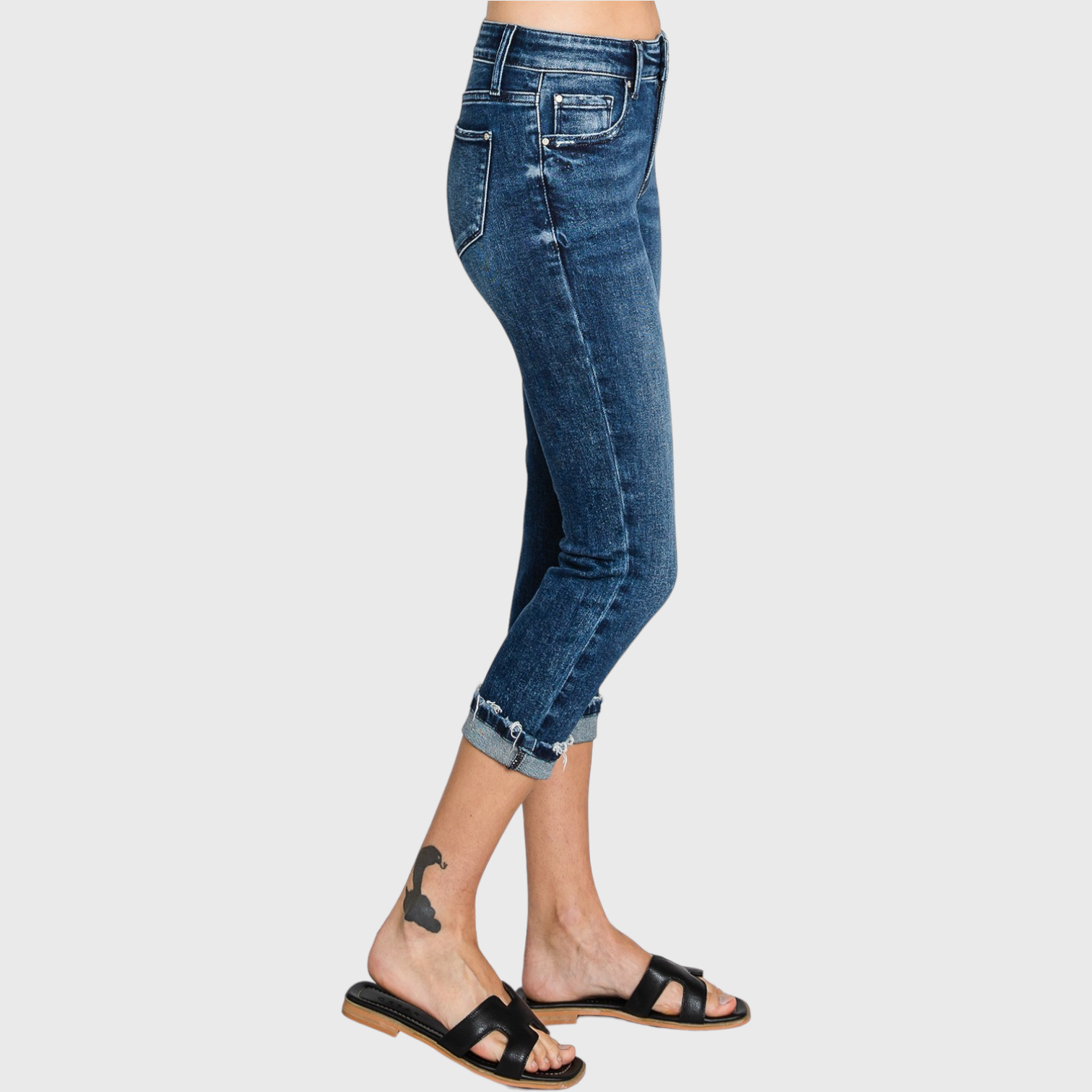 MID RISE SKINNY CAPRI JEANS W/ CUFFED HEM