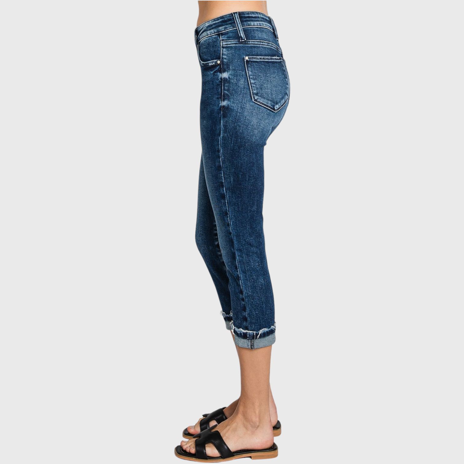 - Mid-rise Skinny capri silhouette