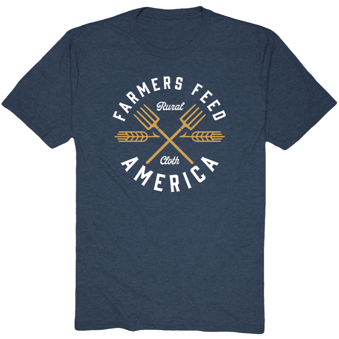 Celebrate the unyielding spirit of American agriculture with our "Pitchfork Tee." This striking design features two crossed pitchforks at its center, representing the dedication and hard work of farmers who toil day in and day out to put food on our tables. Encircling the pitchforks in a bold and proud circle are the words "Farmers Feed America."