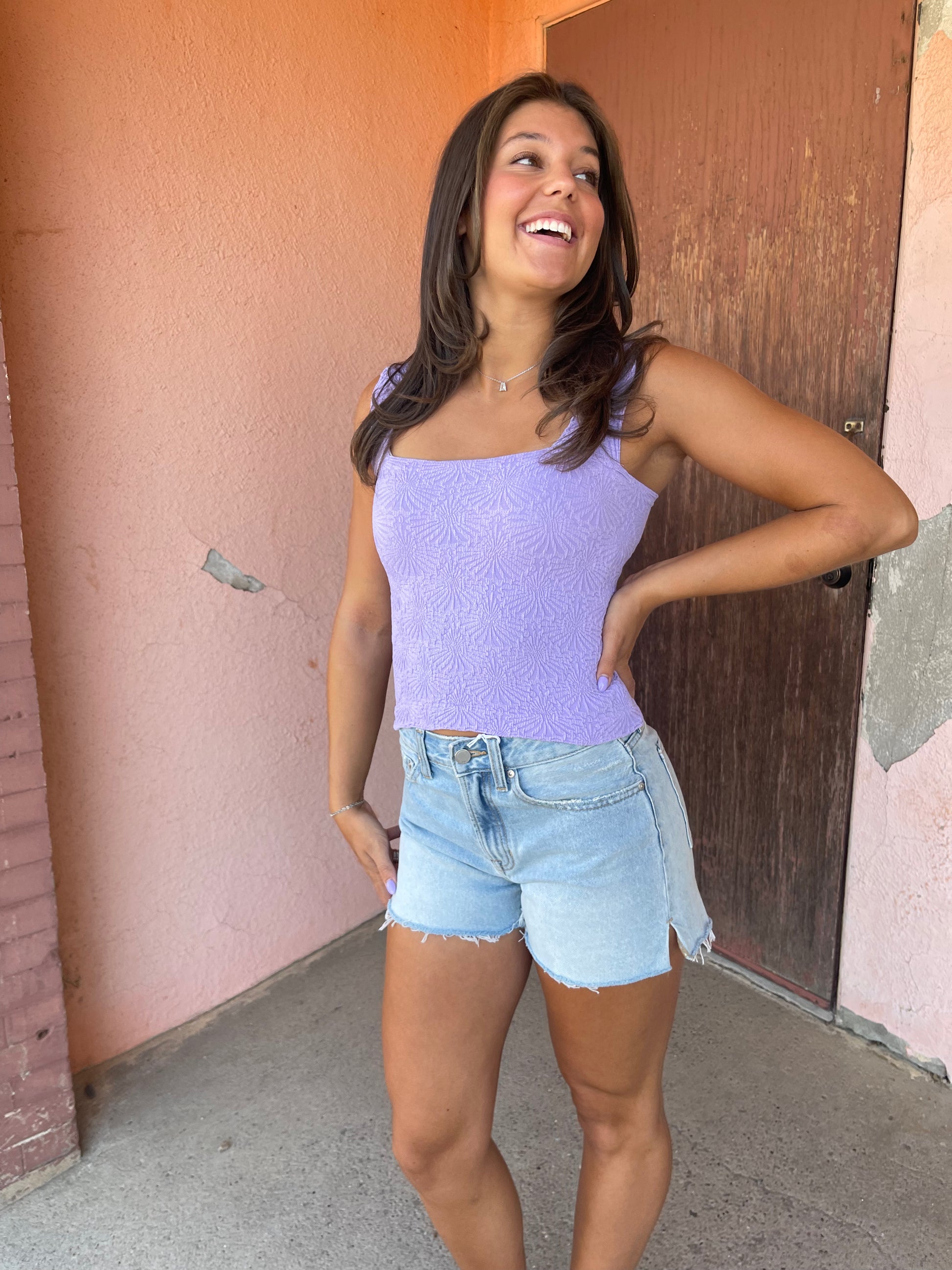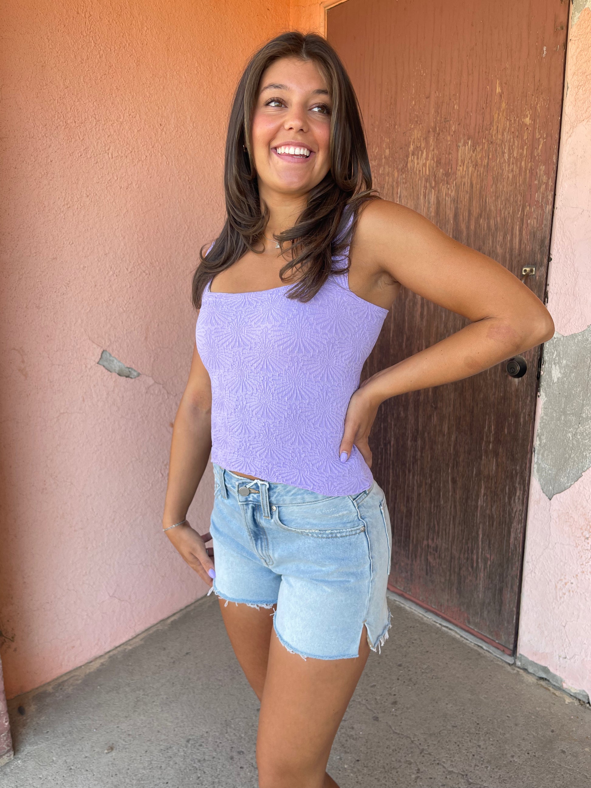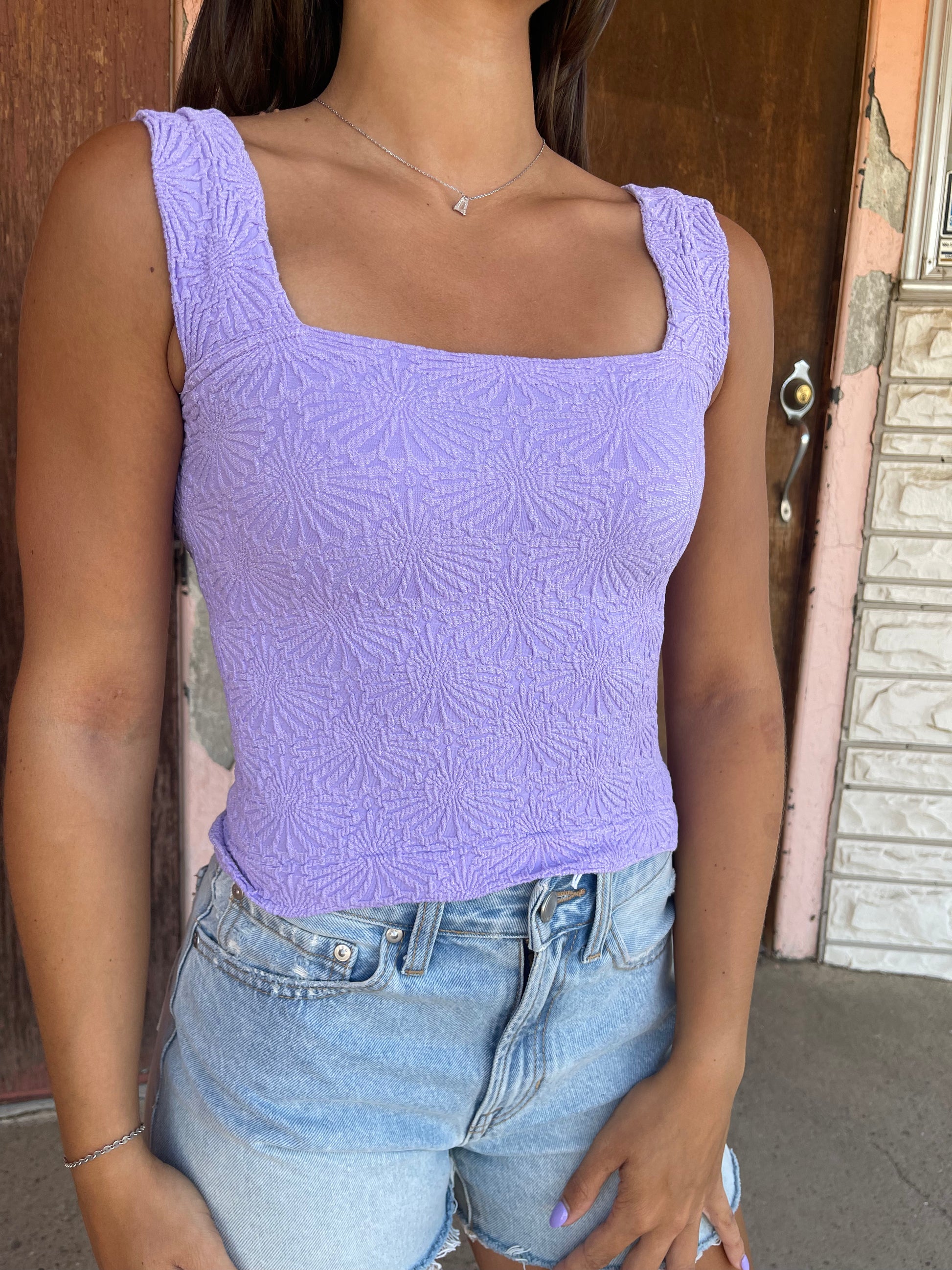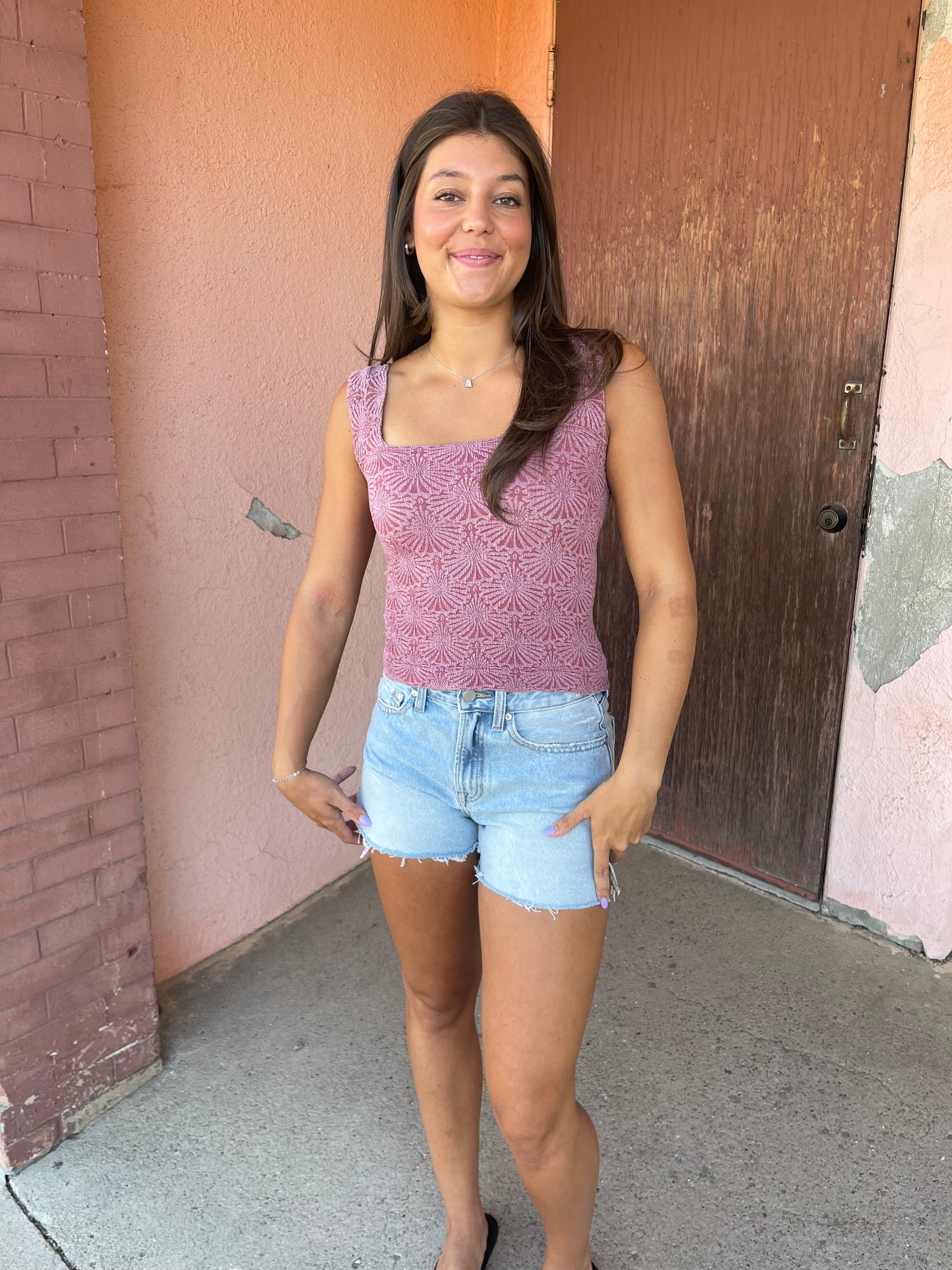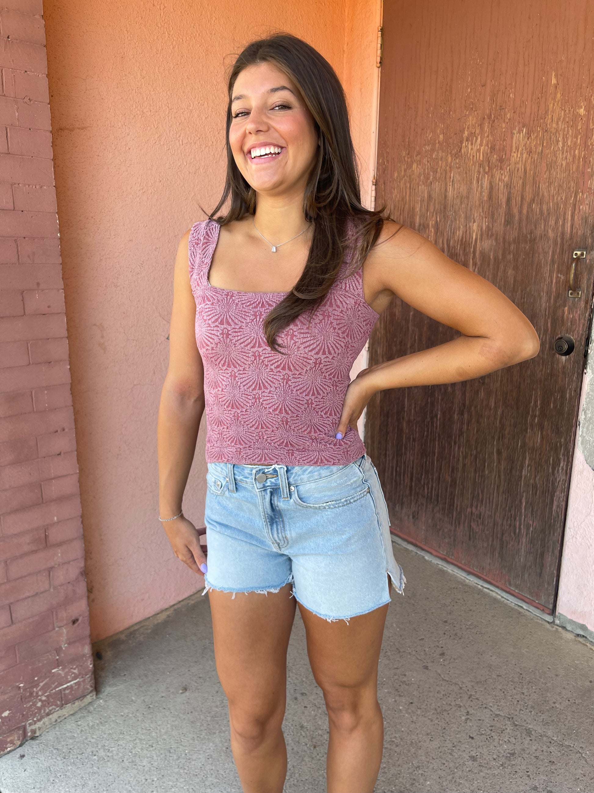 This unique, seamless jacquard tank top is crafted from a blend of Modal, Nylon, and Spandex for a comfortable and stretchy fit. The square neckline, sleeveless design, and all-over floral print create a vintage-inspired look. The ribbed knit construction and cropped length offer a modern and flattering silhouette. Pair it with high-waisted jeans or a skirt for a stylish and feminine outfit. (One Size)