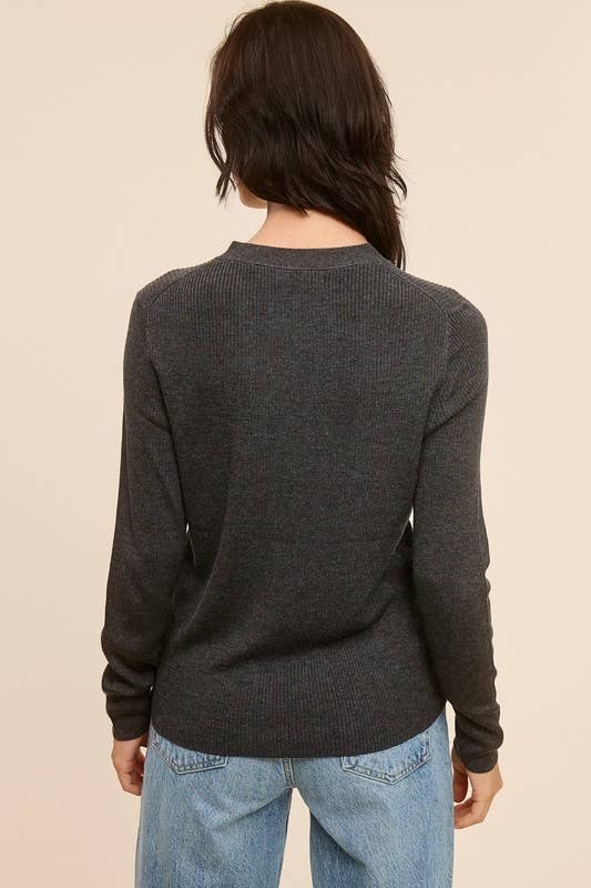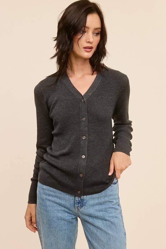 CHARCOAL RIBBED CARDIGAN