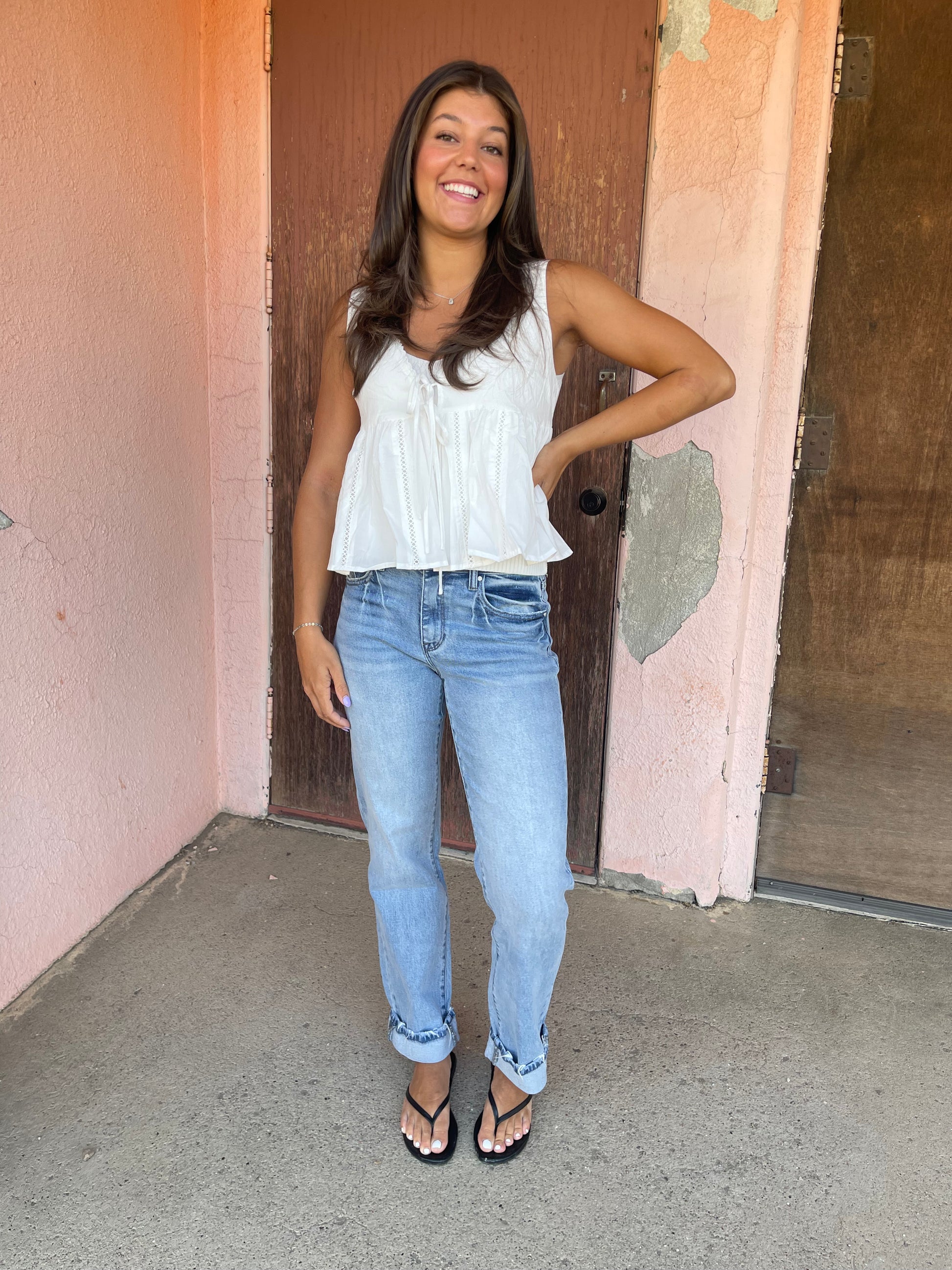 TIE FRONT SLEEVELESS PEPLUM TOP Size + Fit - Model is wearing size S - Measurements taken from size S - 5'9" / 175CM