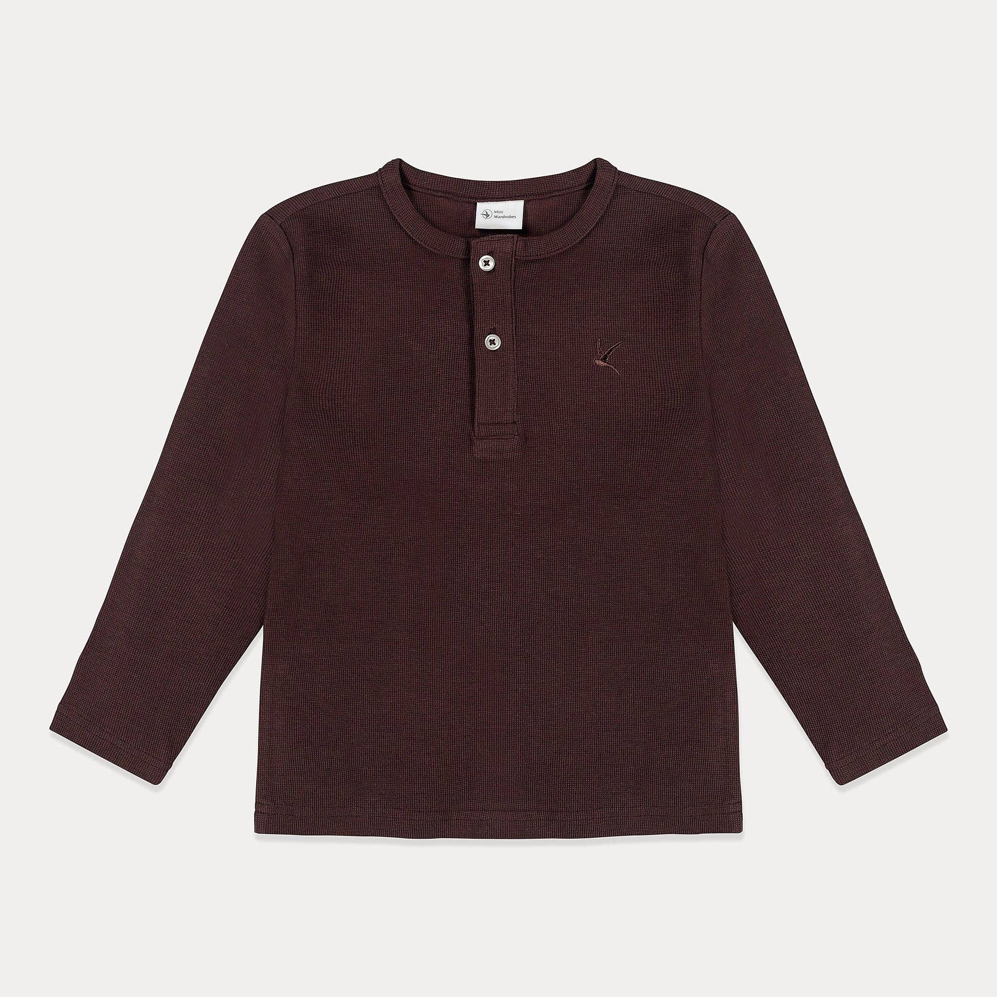 Boys Thermal Waffle Knit Shirt: Coffee Brown