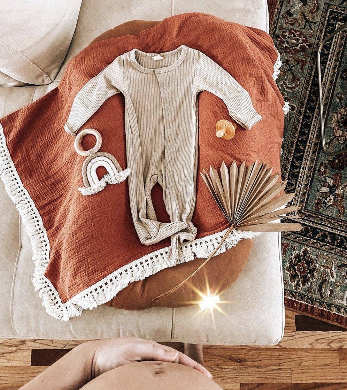 Woven Rainbow Teether with wood ring is made from natural, BPA-free material. The smooth wood ring is perfect for baby to chew and soothe sore gums. Perfect size for baby to hold measuring 5.5” x 4”.